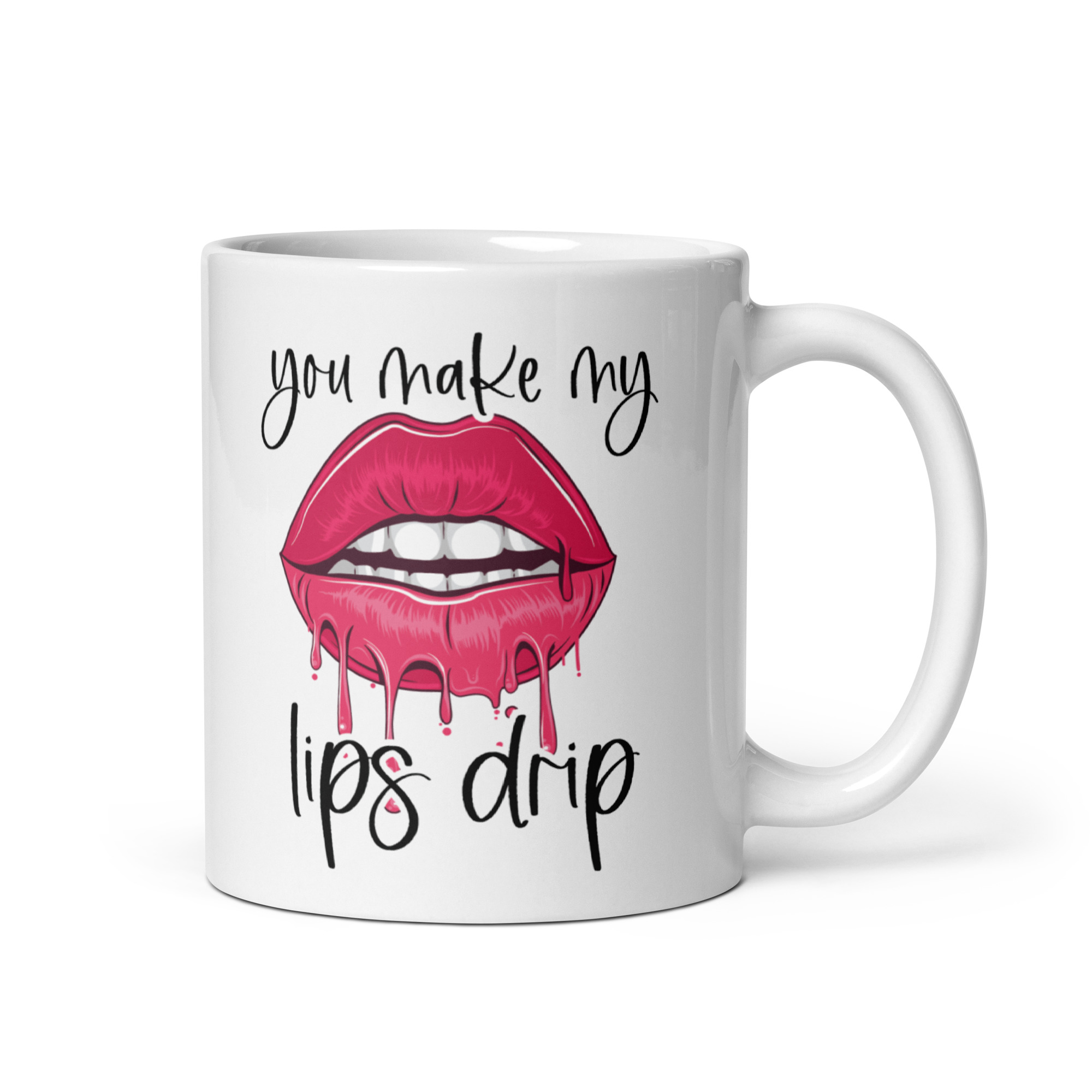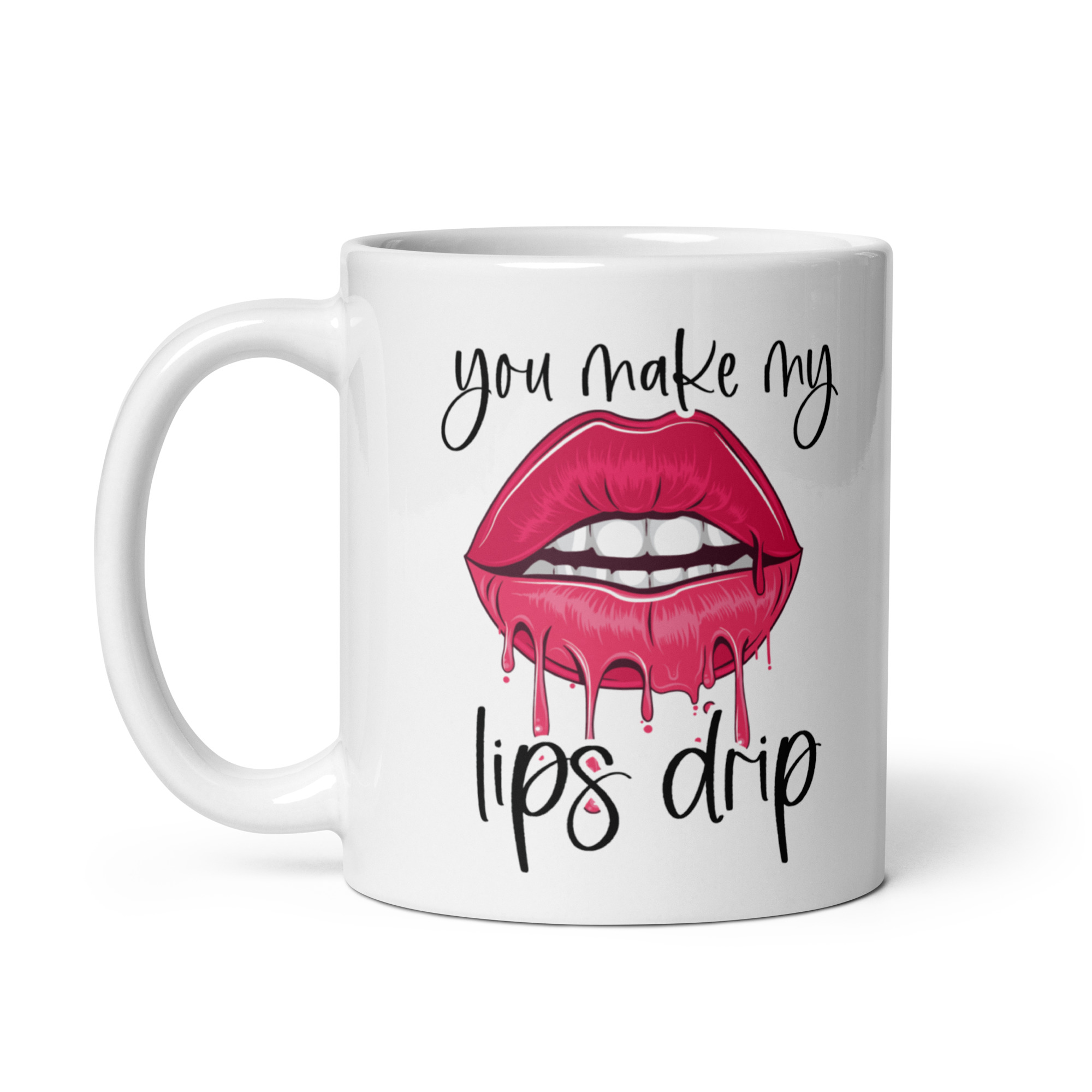 You Make My Lips Drip mug for him is one of those gloriously cheeky designs that knows exactly what it is doing. Bold, flirty and just the right side of filthy, this mug takes a simple brew and turns it into a proper laugh. The design features a pair of glossy hot pink lips, slightly parted and dripping dramatically, with the phrase “you make my lips drip” wrapped around them in a loose handwritten style. It is playful, suggestive and impossible to ignore, which makes it perfect for anyone who enjoys their gifts with a bit more bite.