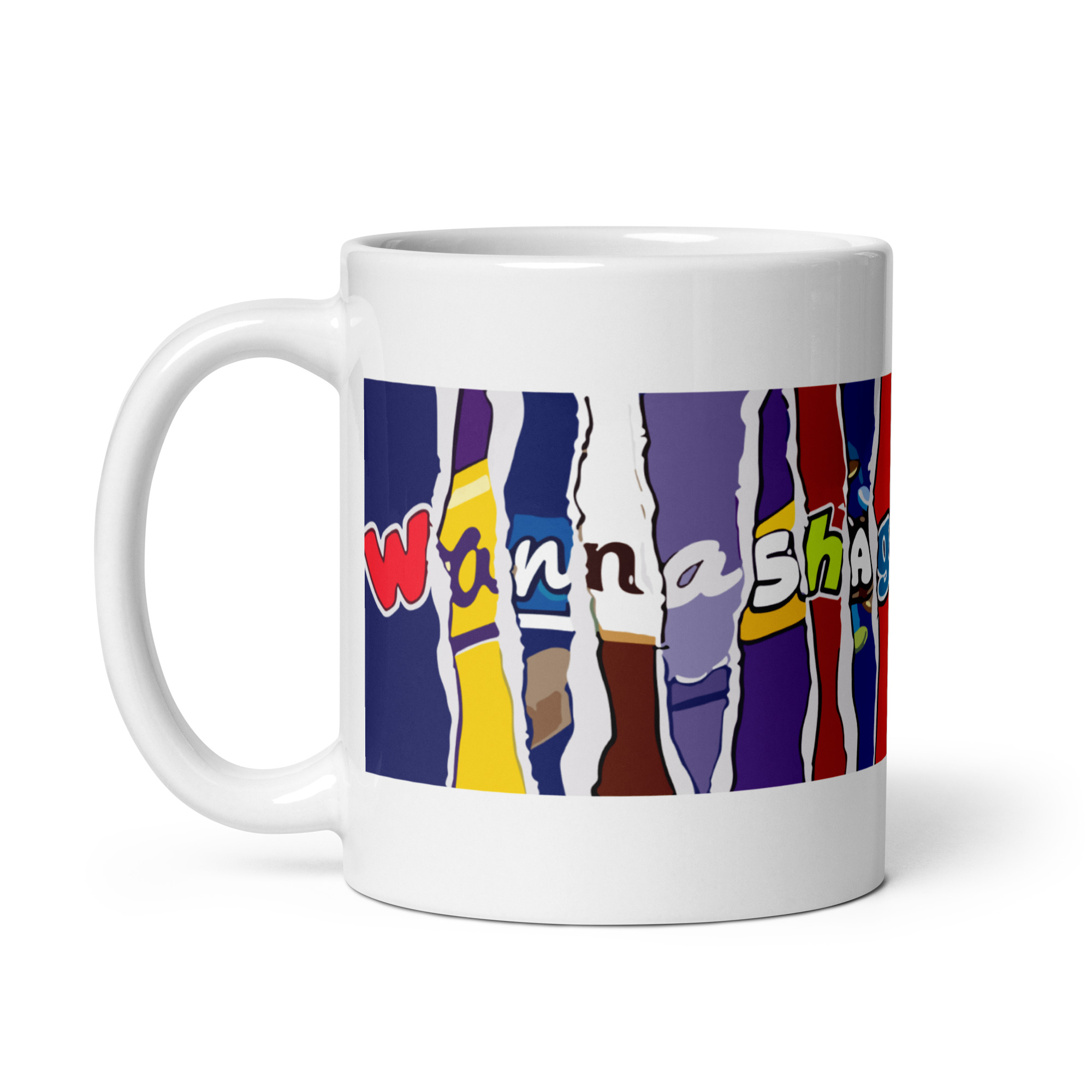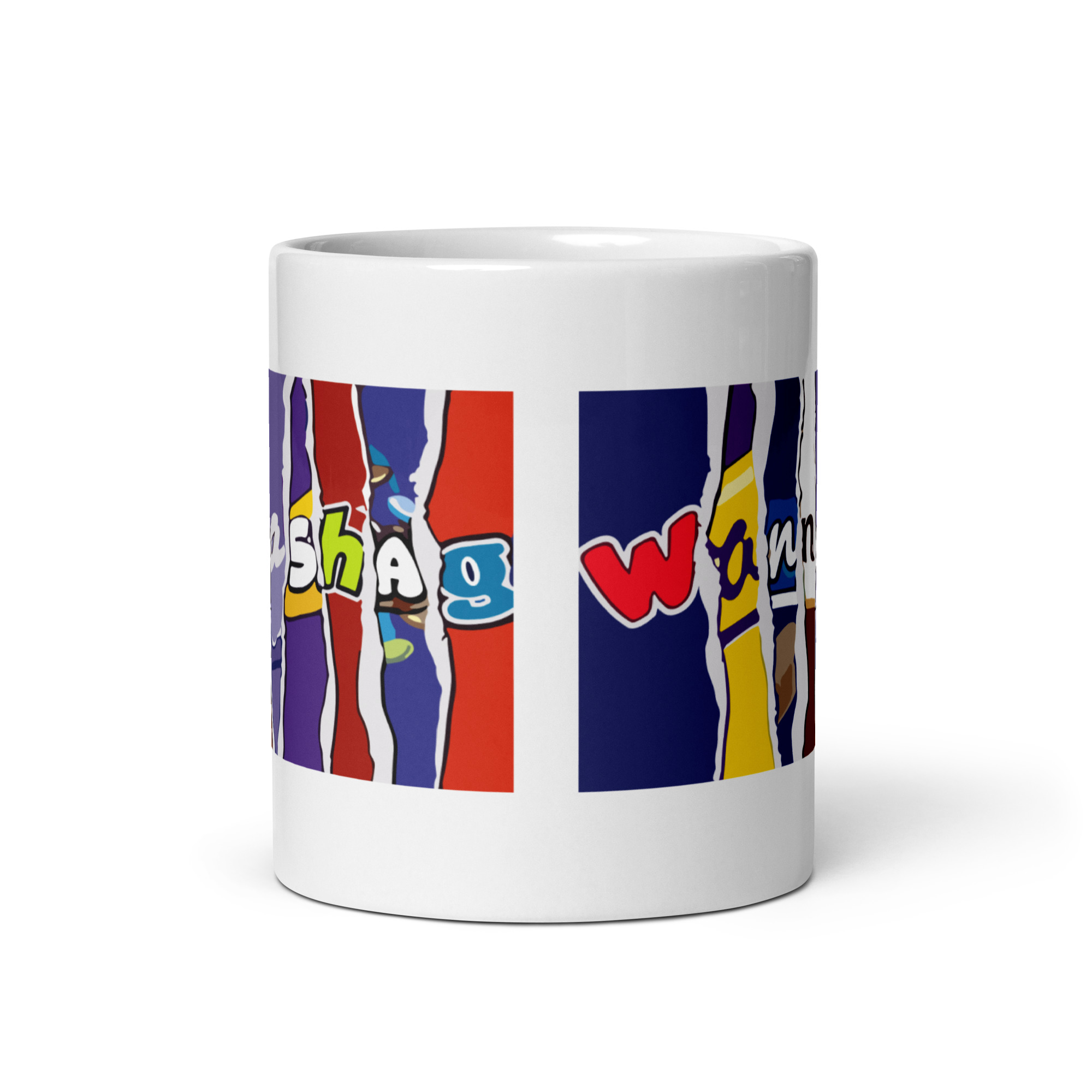 Funny rude chocolate wrapper mug for her is a proper little winner if you are after something colourful, cheeky and a bit filthy without going completely over the top. This design takes that familiar sweet-wrapper look and tears it into bright, bold strips to create a playful collage across the mug. With rich blues, purples, reds and yellows all mashed together in a wrapper-inspired layout, it has loads of energy and a mischievous feel that instantly makes it stand out from the usual plain slogan mugs.