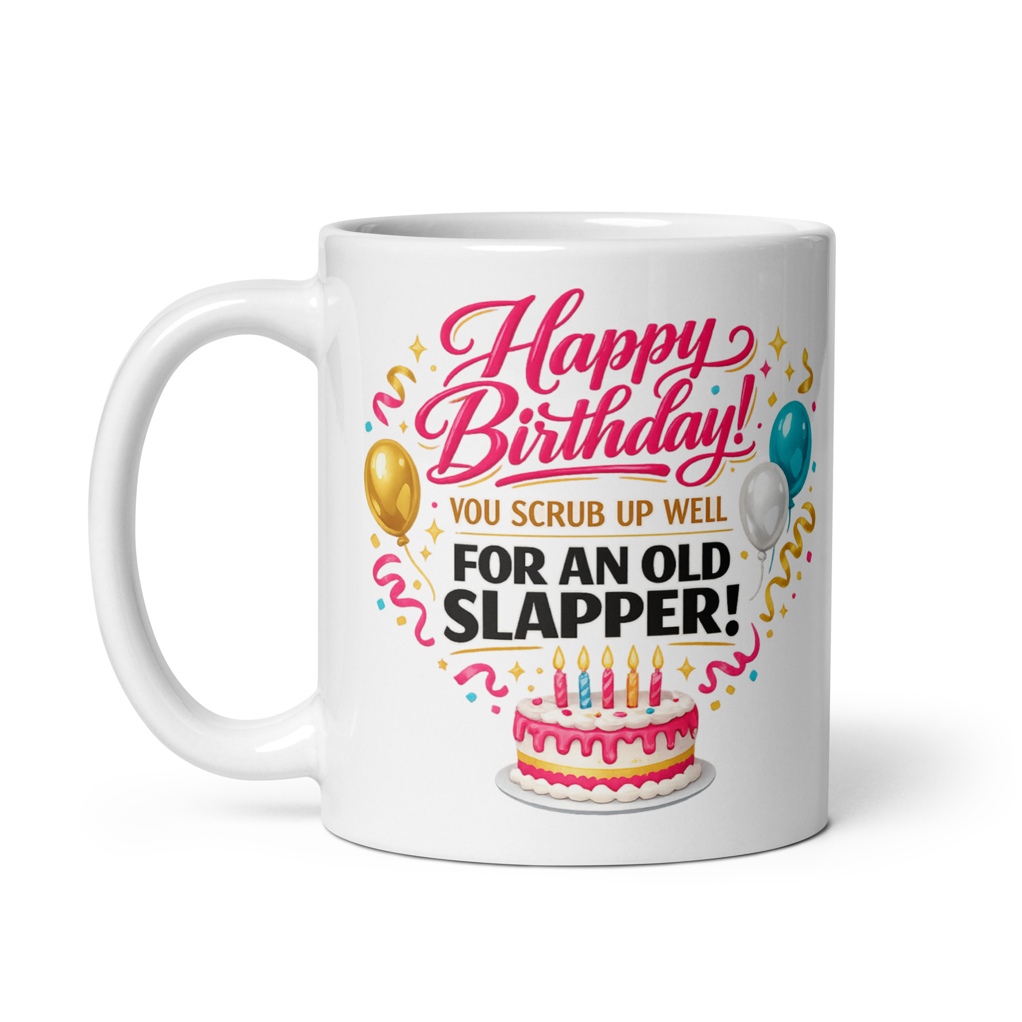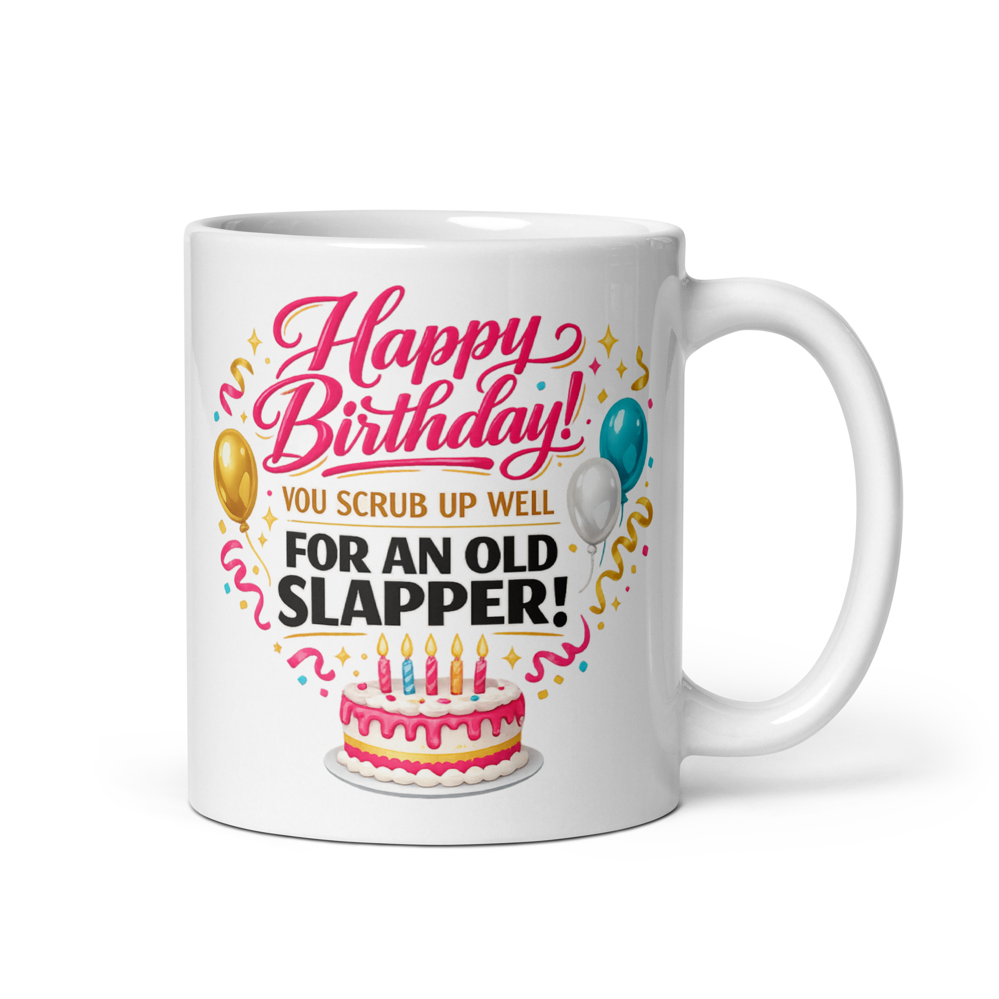 Rude birthday mug – Happy Birthday You Scrub Up Well For An Old Slapper