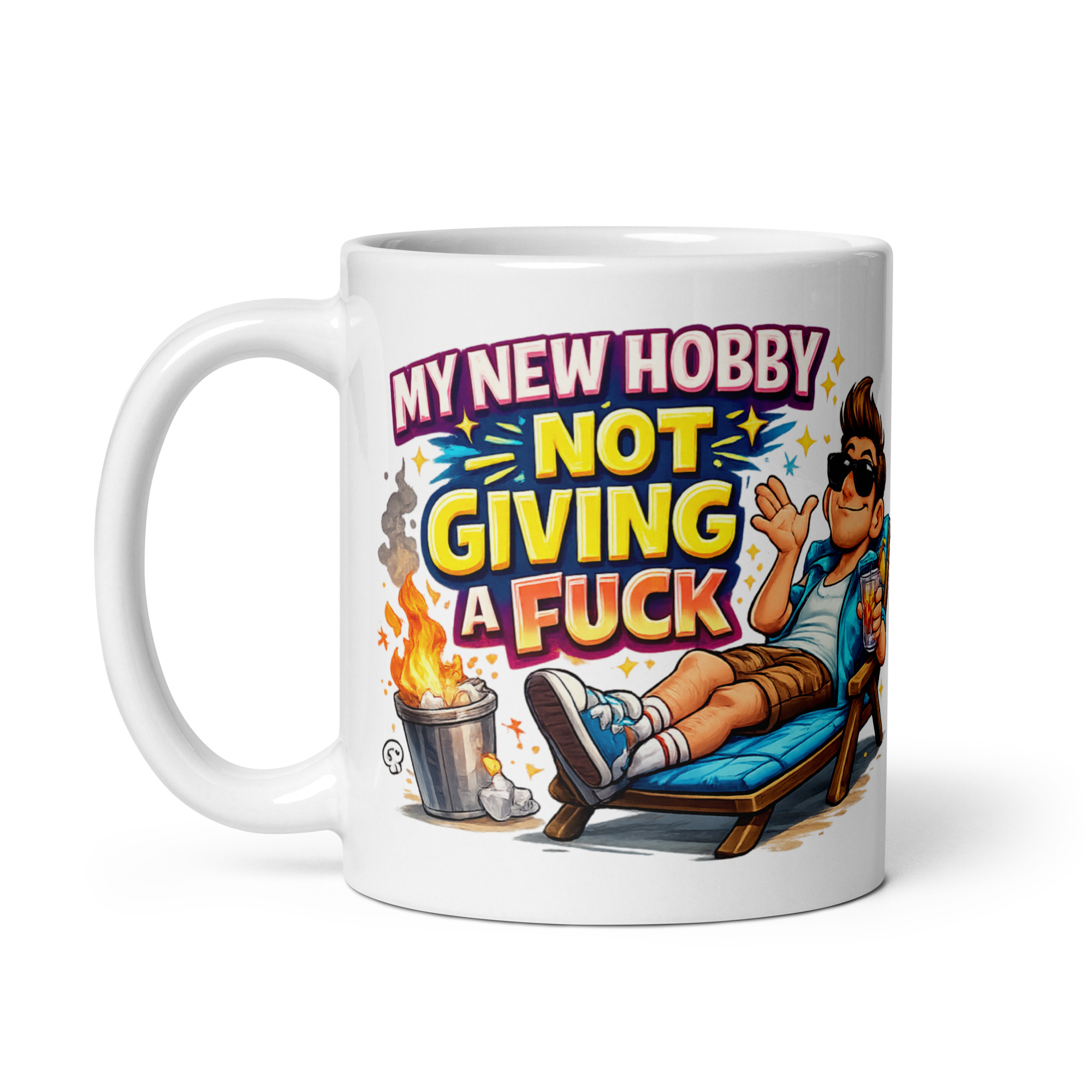 Retirement gift mug shoppers after something with a bit more bite than the usual polite send-off nonsense are in exactly the right place here. “My New Hobby Not Giving A Fuck” is the kind of slogan that says what everyone is thinking but only a lucky retiree gets to say out loud. The design leans into that brilliantly, with a smug, laid-back cartoon bloke stretched out on a sun lounger, drink in hand, shades on, and absolutely no intention of lifting a finger for anyone. It is bright, cheeky and spot on for someone who has officially clocked out and could not be happier about it.