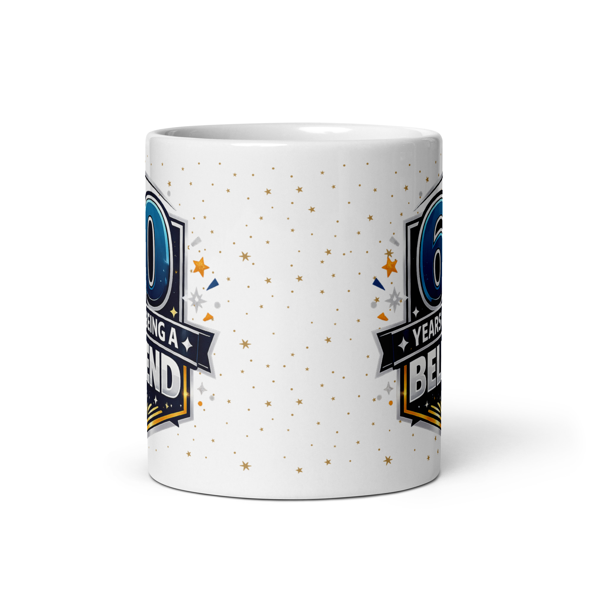 The design has a proper celebratory feel without losing the insult. The oversized blue “60” stands front and centre, framed by a dark shield-style background with gold stars and sparkly details scattered around it. It gives the mug a party-ready look, almost like an award for years of committed bell-end behaviour. It’s flashy enough to feel like a real birthday gift, but the message keeps it firmly in rude territory, which is exactly where it belongs.