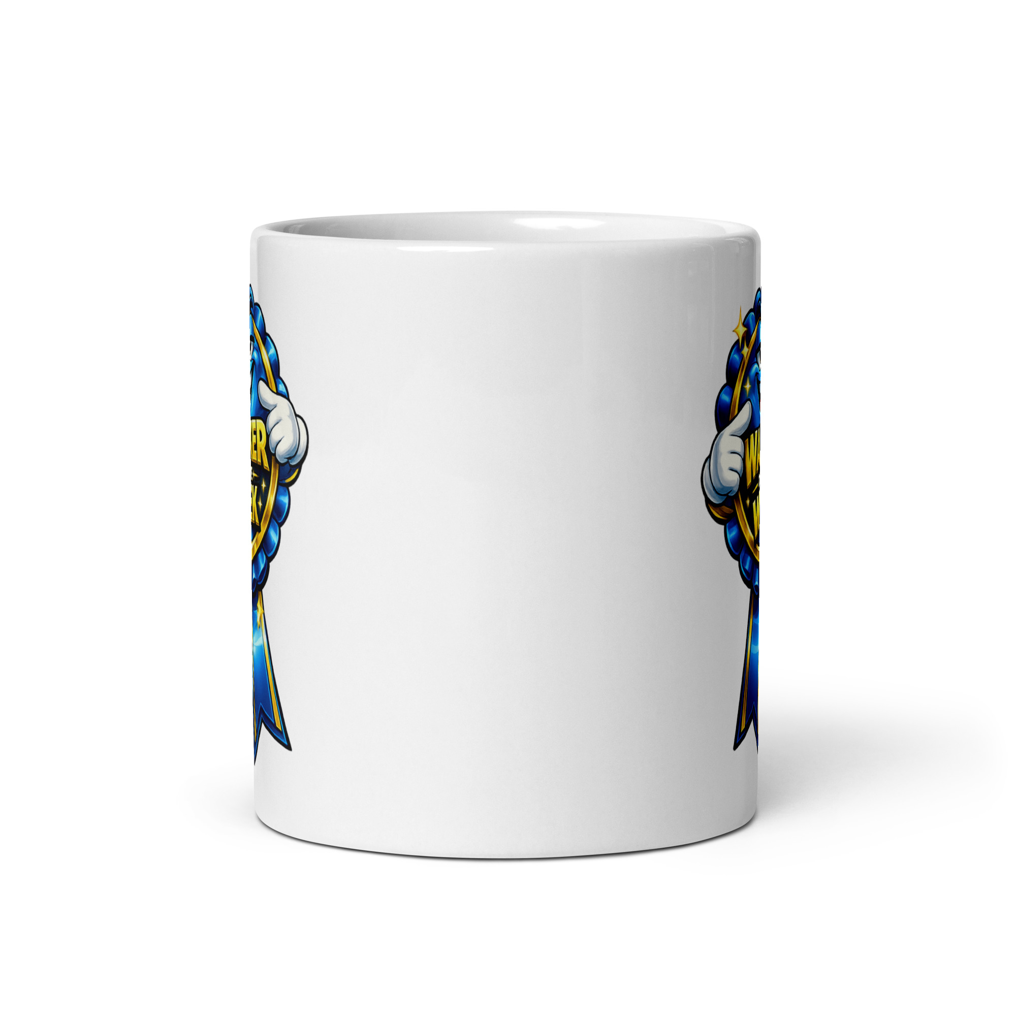 The design itself does a lot of the heavy lifting here. Rather than just chucking the phrase on a mug and calling it a day, this one leans right into the award theme with a shiny blue ribbon, gold trim, sparkly details and a cheeky expression that makes the whole thing feel even dafter. It looks like the sort of badge someone should be embarrassed to receive, which is exactly why it works so well. The smug little face gives it extra attitude, and the bright colours help the design stand out nicely against the clean white ceramic mug.