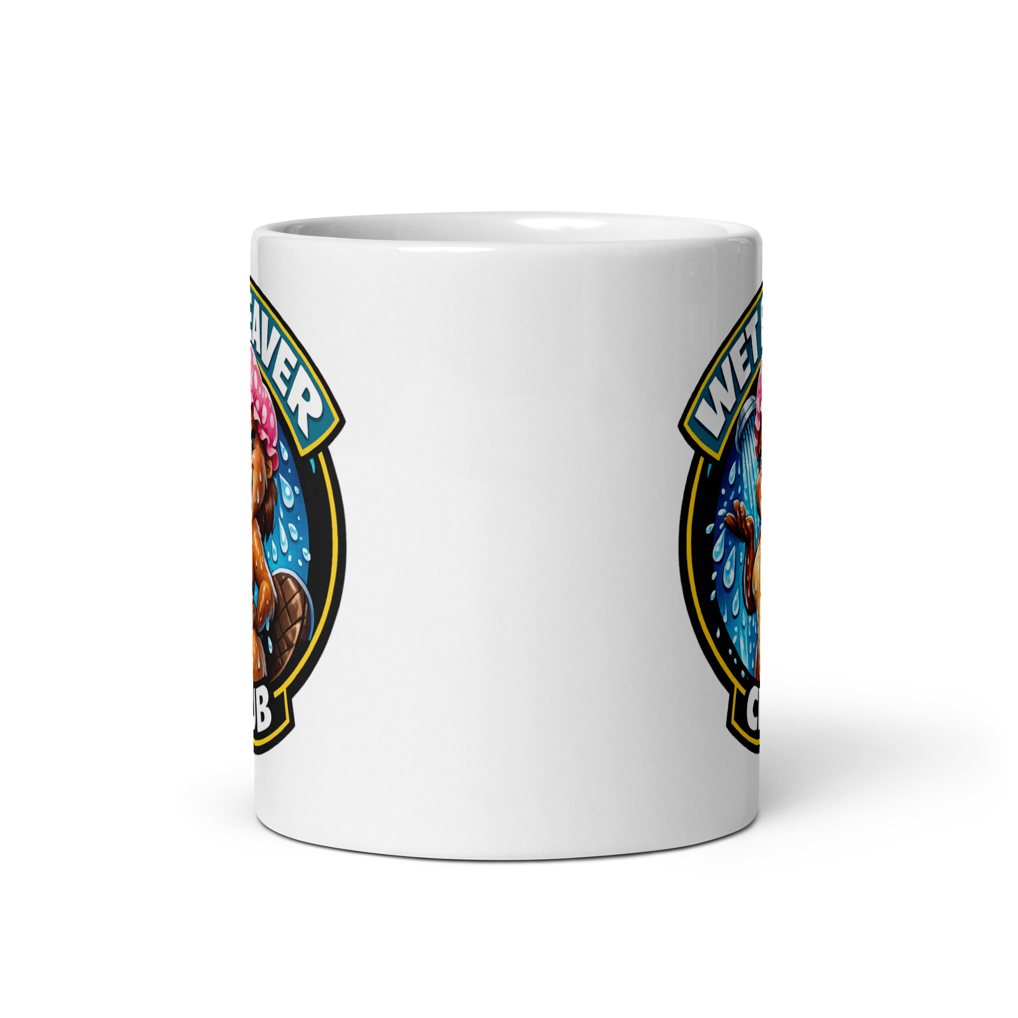 There is something about this mug that works straight away. The phrase “Wet Beaver Club” is ridiculous enough on its own, but paired with the bright badge-style artwork it becomes even more giftable. The design has a retro club-logo feel, with strong outlines, vivid blues, warm brown tones, and a pop of pink from the shower cap that gives it a fun, slightly cheeky feminine twist. It is rude without feeling grim, which is exactly why it lands so well as a present. It feels more like a knowing wink than anything too heavy-handed, and that makes it perfect for birthdays, hens, Secret Santa gifts, or just winding up a mate who will absolutely love it.