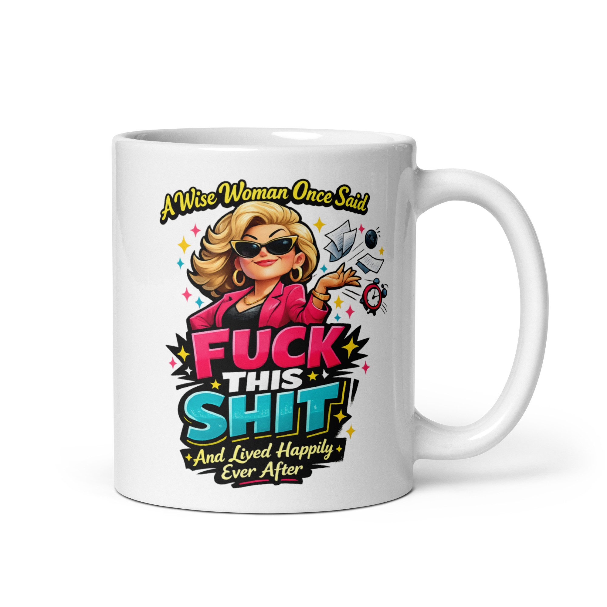 Funny office leaving mug fans, this one absolutely nails that glorious moment when someone has finally had enough and decides to make it everyone else’s problem in the best possible way. Featuring the brilliantly blunt phrase “A Wise Woman Once Said Fuck This Shit And Lived Happily Ever After”, this mug is bold, funny and packed with proper fed-up energy. Whether you’re buying it as an office leaving gift, a funny divorce mug or just for someone who’s done with the nonsense, this design says what a lot of people are thinking but rarely get to shout out loud.