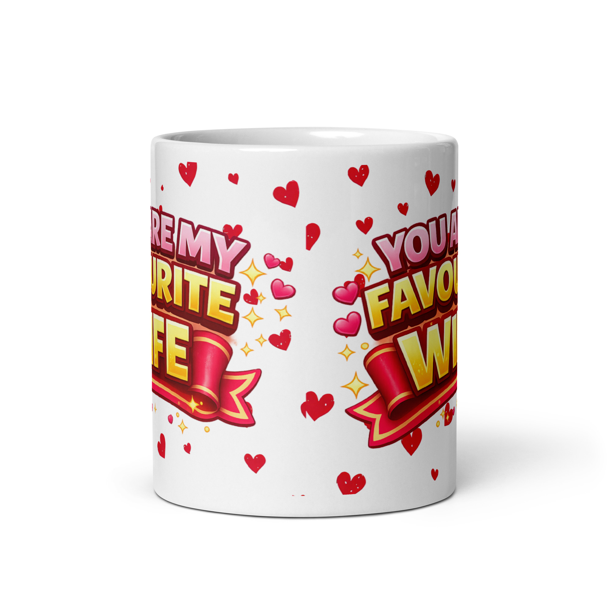 The design keeps things fun from the off. Bold pink, red and gold lettering takes centre stage, while little red hearts scattered across the white ceramic background give it that proper Valentine’s Day and anniversary feel. It looks romantic without getting too syrupy, which is exactly why it works so well. The phrase itself is simple, but that is the charm of it. “You Are My Favourite Wife” sounds sweet at first glance, then lands with that little extra wink that makes it far more memorable than the usual overly serious love gifts.